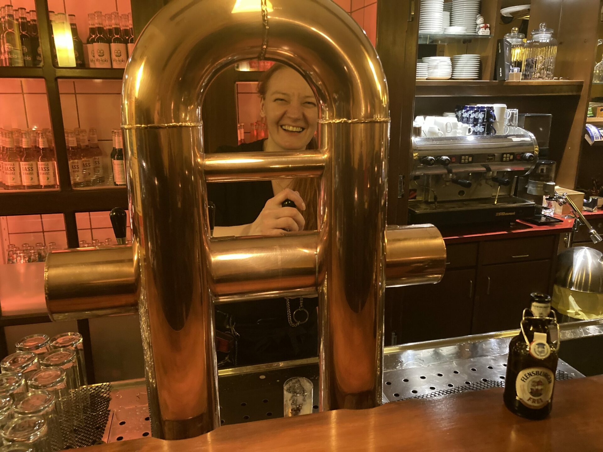 „Gastronomie ist für uns nicht einfach: Wir servieren Essen, Getränke und ein professionelles Lächeln und ihr gebt uns dafür Geld, sondern Gastronomie bedeutet für uns auch eine familiäre und freundschaftliche Atmosphäre, in der sich Gäste und Personal wohlfühlen und am Ende des Abends mit einem Lachen und einem guten Gefühl nach Hause gehen.“ O-Ton Jenny Maus, die zwischen den Bestellungen, die sie an die Tische bringt, locker ganz schön lange Sätze formulieren kann. Ich bestelle noch ein Früh und eine hausgemachte Frikadelle. Freundschaft.