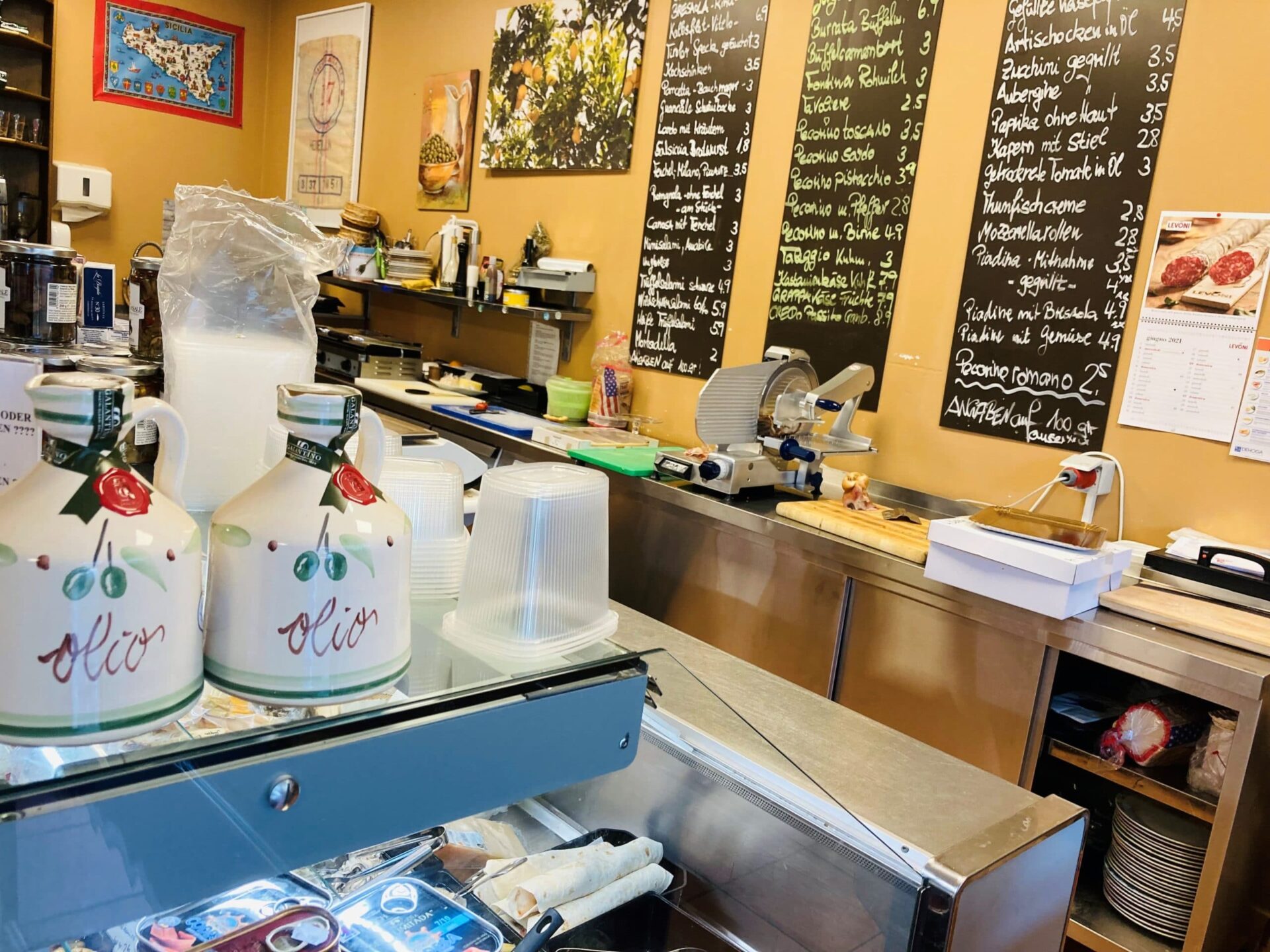 „Buon Giorno, Schlebusch.“ In der Bottega Italiano kaufen nicht nur Schlebuscher italienische Spezialitäten ein. Das Prunkstück dieses italienischen Ladens mit angeschlossener Enoteca ist die prall gefüllte Verkaufstheke. Hier werden ausschließlich Lebensmittel aus Italien gehandelt. Trüffelschinken, Salsicia, Büffelcamenbert, getrocknete Tomate, die Liste ließe sich endlos appetitanregend fortsetzen. Von Montag bis Samstag gibt es auch einen täglich wechselnden Mittagstisch und eine kleine Speisenkarte. Zum Beispiel Pasta und belegte Ciabatta. Dazu erlesene Weine und abschließend Dolci und Caffè. „Hier kommt nichts auf den Tisch, was wir selbst nicht essen und trinken würden“, verspricht Brigitte Gibaldo, die die Bottega seit 2002 führt. „Wir verstehen uns nicht nur als Einzelhandel, bei uns können Sie in der Enoteca und auf der Sonnenterrasse Platz nehmen.“ Die Zutaten werden wöchentlich aus Italien angeliefert, alle Speisen werden frisch zubereitet. Mitten im „Dorf“ Schlebusch hat sich eine rustikale Landküche mit Ladentheke etabliert. Unaufgeregtes Ambiente, leckere Waren, einfach gute Küche. Molto bene.