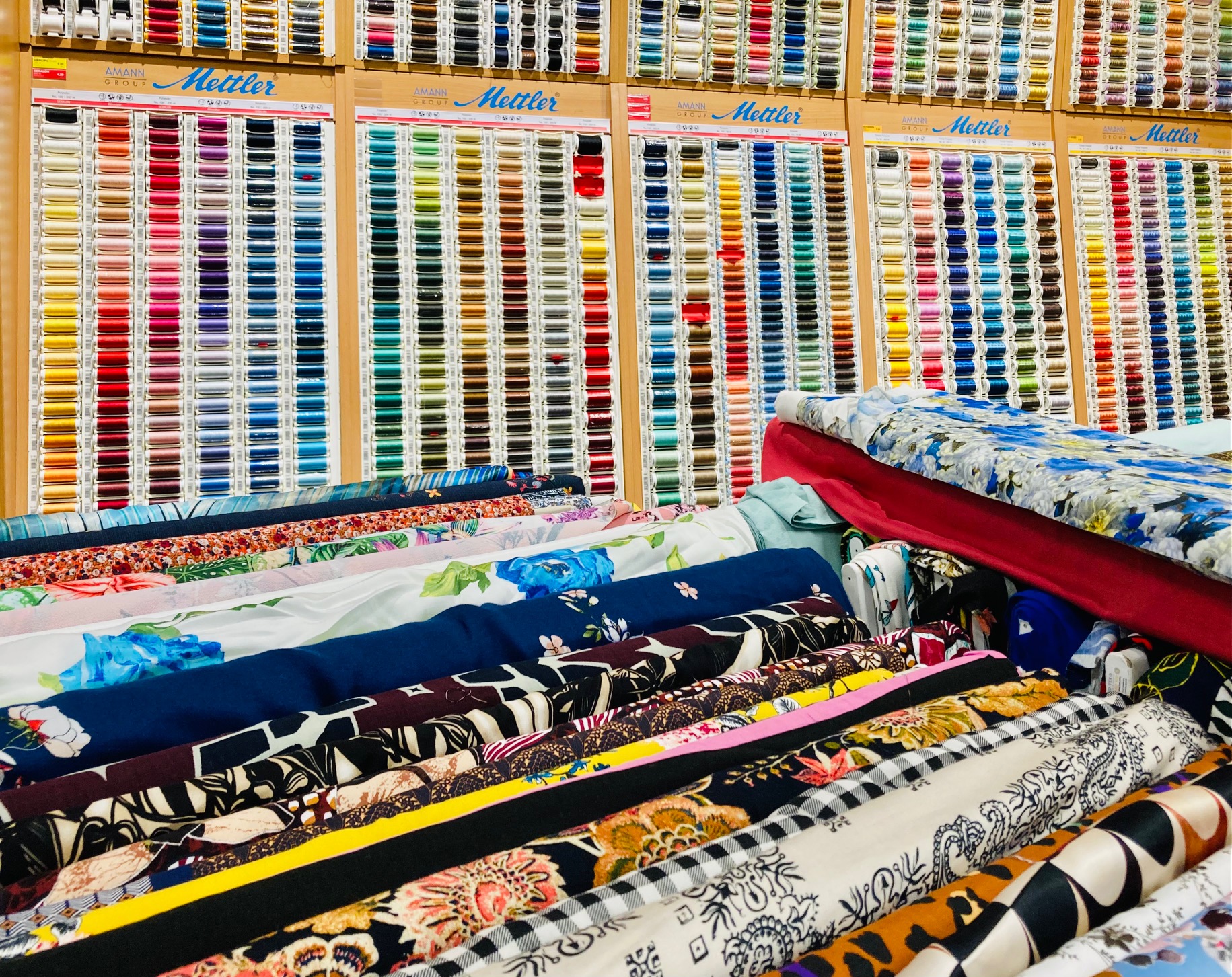 Die Experten streiten darüber, wie viele Menschen in Deutschland selbst nähen. Es sollen über fünf Millionen sein. „Vor allem sind es Kundinnen, die unser Geschäft besuchen“, wird mir in der Nähszene in der Schlebuscher Fußgängerzone mitgeteilt. Ich als Mann wurde von dem Kaleidoskop an Farben angezogen, als ich vorbeiflaniere und durch die offene Tür linse. Schnell lande ich in der Stoffabteilung und lerne gleichzeitig eine ganze Menge. „Die Alteingesessenen gehen immer noch zum Kühler, das ist der Vorbesitzer des Geschäfts, wir heißen aber seit 1995 Nähszene Turmstoffe.“ Der Zusatz Turmstoffe hat seinen guten Grund. In welchem Nähgeschäft finden sich schon selbst produzierte Stoffe? Der neue Besitzer Dirk Müller stammt aus einer Familie, die Stoffe selbst produziert und mit den Materialien handelt. Seide aus Brasilien, Kaschmir aus der Mongolei, Flachsgewebe aus Belgien. Schurwolle aus Italien. Das alles findet sich hier in der Schlebuscher Nähszene und vier weiteren Filialen in NRW.