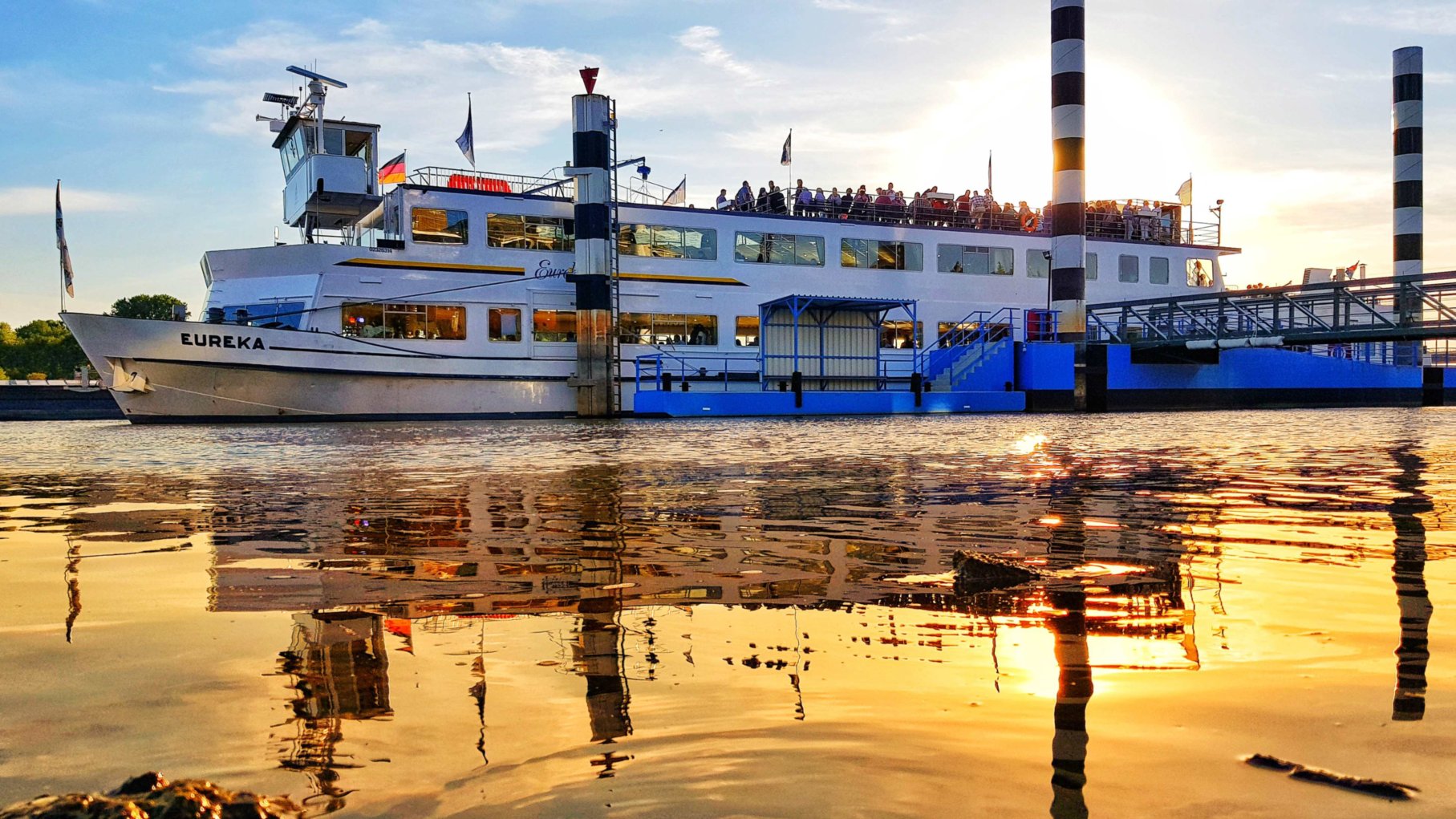 Hier startet einmal im Jahr die „Eureka“ zum River-Boat-Shuffle des Vereins Jazz-Lev. Wer sich einmal an einem lauen Abend auf dem Deck der „MS Eureka“ den warmen Sommerwind hat um die Ohren wehen lassen und wer dann später unter Deck mit gleich mehreren Bands die alljährliche Riesenparty auf dem Schiff gefeiert hat, der kommt von der Tour auf dem Rhein so schnell nicht wieder los.