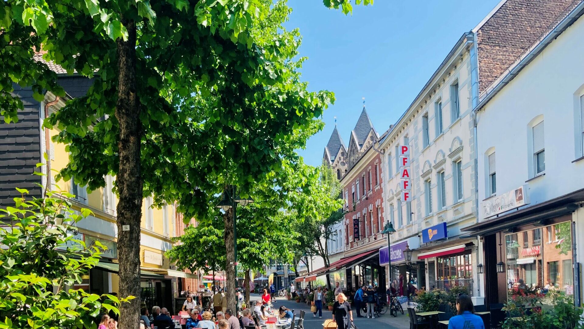 So bezeichnen die Schlebuscher ihren Stadtteil gerne selbst. Und das meinen sie auch so. Doch was nach ländlicher Abgeschiedenheit, Langeweile und Provinzialität klingt, sucht man in Leverkusens östlichstem Stadtteil vergebens. Im Gegenteil: An ein Dorf erinnert in Schlebusch nur die kleinteilige Bebauung, die Gemütlichkeit der Fußgängerzone und die Beschaulichkeit. Ansonsten ist Schlebusch ein beliebter Treffpunkt für Jung bis Alt zum Bummeln und Einkaufen in ansprechendem Ambiente mit zahlreiche traditionellen bergischen Schieferhäusern und gründerzeitlichen Fassaden.