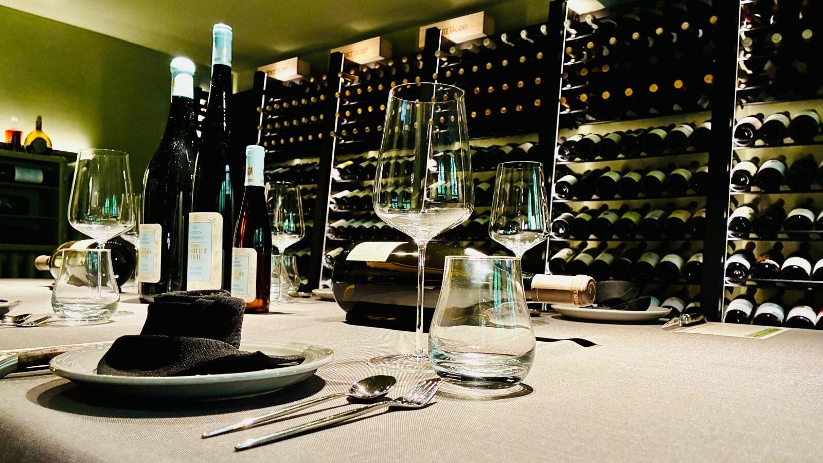 Die Räumlichkeiten strahlen eine funktionale Eleganz aus, und wer den Weinkeller betritt, erstarrt nicht nur wegen der heruntergekühlten Raumtemperatur. Es ist auch ein wenig Ehrfurcht dabei, die einen ergreift, wenn der Gast langsam an den Regalen entlangstreift. Wer sich auskennt, erspäht edle Tropfen wie zum Beispiel aus dem Weingut J.J. Prüm. Dessen Weine werden auch gerne in der Sternegastronomie angeboten. „Jeder Wein, jedes Weingut in unserem Sortiment erzählt eine Geschichte. Wir kennen die meisten unserer Winzer persönlich und führen ausschließlich handwerklich erzeugte Weine mit klarer Herkunft und individuellem Charakter“, erläutert Antonio Spanu.