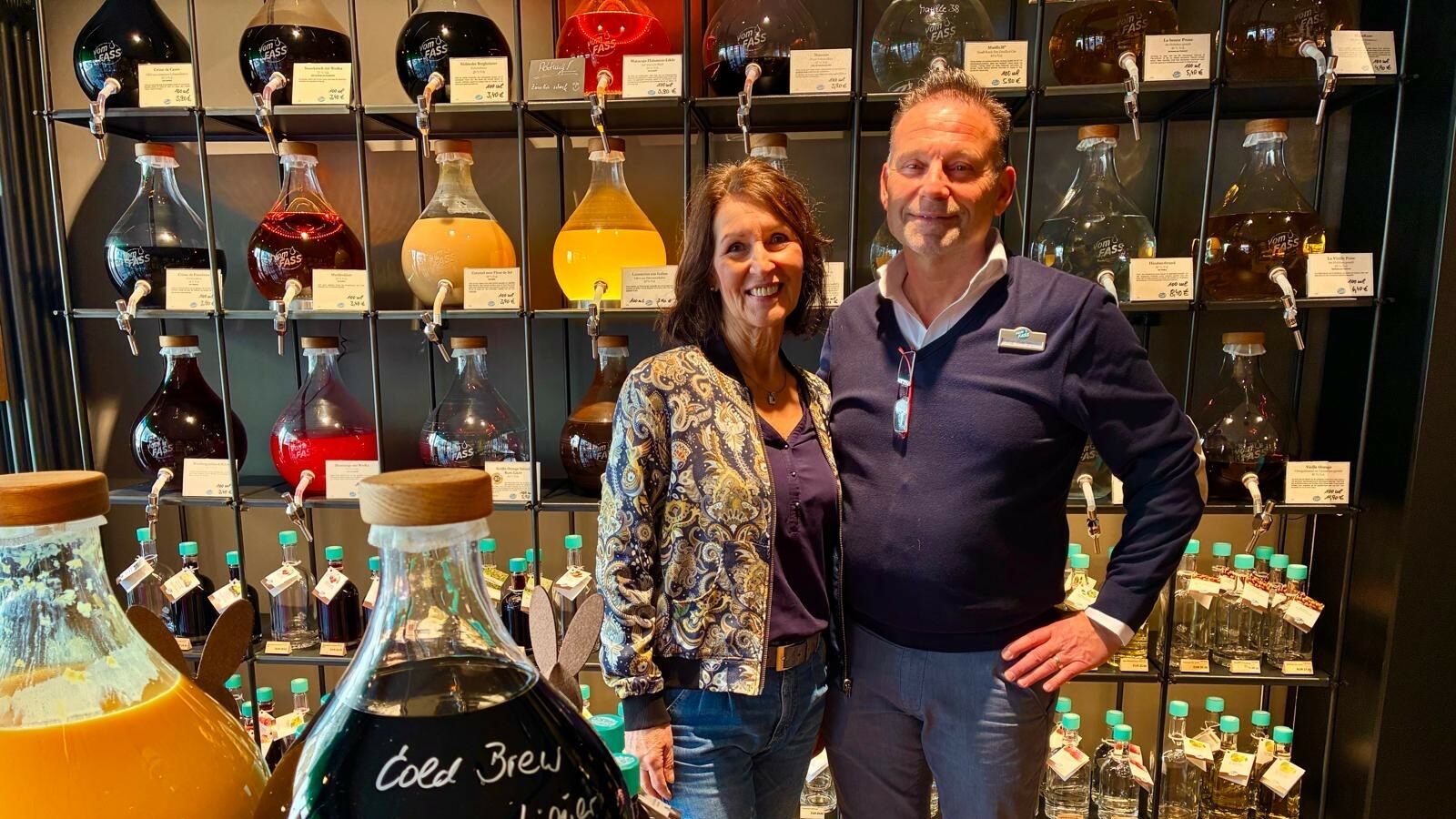 Ganz zentral am Wiesdorfer Platz liegt das Ladenlokal „vomFASS“. Es ist ein Ort, den eine besondere Atmosphäre auszeichnet. In den Regalen, gehalten in feinem Industrial Design vor dunklen Wänden, lagern jede Menge Fässchen aus Holz und Keramik sowie Glasballone. Hier finden sich edle Whiskys und ausgewähltes Hochprozentiges ebenso wie Öle und Essige.
