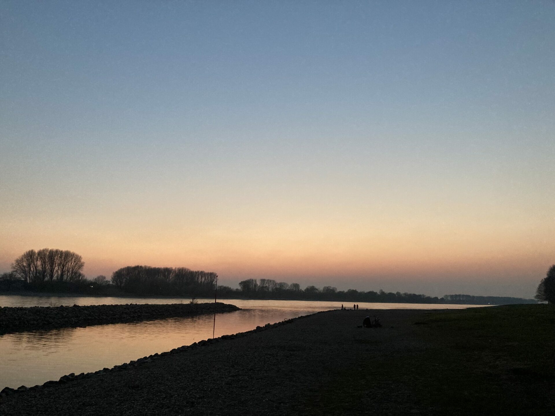 Hier kommen die Wupper und der Rhein zsammen. Am schönsten ist es am frühen Morgen. Dann wabert der Frühnebel über den Fluss. Oder am späten Abend. Wenn es goldorange über der Wasserfläche flirrt. Dann und wann kommt ein Schiff vorbei und wer hier ruhig an der Wupperspitze zusammensitzt, der spürt die Energien der zwei Ströme, die hier ineinanderfliessen. Hand in Hand oder Arm in Arm spüren wir ein Glitzern und Kribbeln. Wie oft ist diese kleine Landenge schon zum Glücksort geworden?! Liebe deine Stadt.